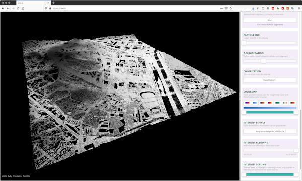 For this example I downloaded some 30 tiles and merged then into one file. Below you can see the whole thing displayed in Plas.io.